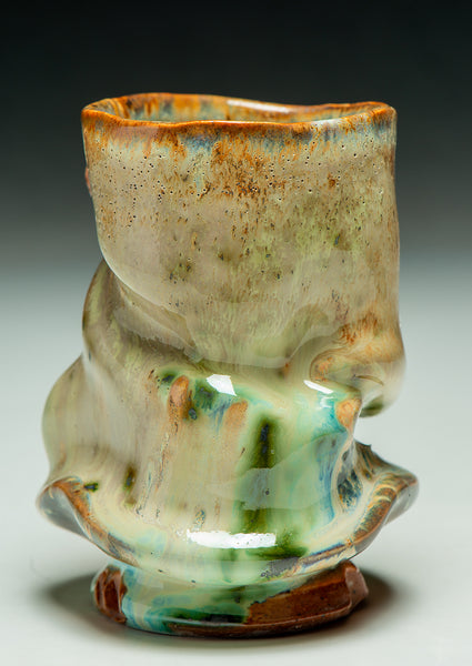 This cup measures 4.5 inches tall. I invite you to look deeply at the remarkable texture and complexity that Oni-glazing creates. This cup is being offered as part of my 50th anniversary of making: 50 years, 50 cups, $50 delivered (domestic shipping).