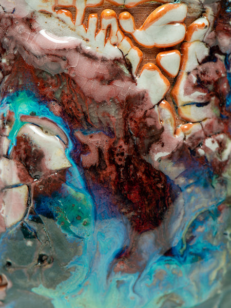 I'm especially interested in "unlearning" some of the things I learned early in my clay career: I'm not trying to cause/create dripping, running and crawling. Notice how these "errors" contribute to the vibrant and robust nature of the work.