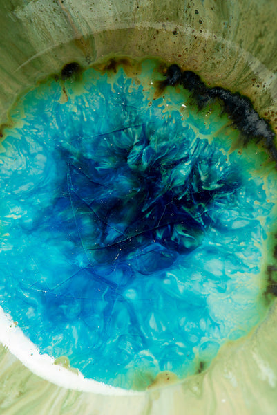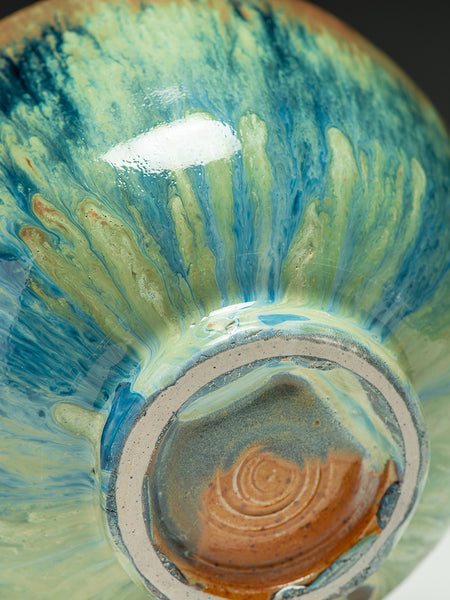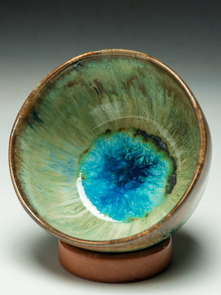 This Tea Bowl (chawan) measures 3.5 inches tall and 5.5 inches in diameter. I invite you to look deeply at the remarkable texture and complexity that Oni-glazing creates. I've continued to explore "Oni-Glazing" for the last three years. The complexity and elusiveness manage to delight and challenge me enough that I keep going.