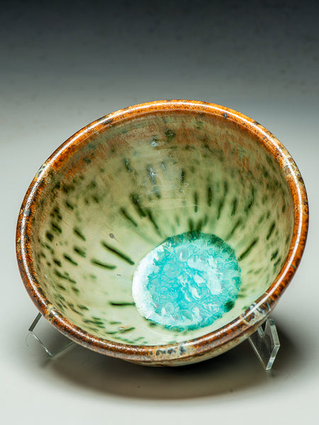 This Triple-Glazed Bowl measures 3.5 inches tall and 6.5 inches in diameter. I invite you to look deeply at the remarkable texture and complexity. Be sure to see all of the images. Some of the magic is most visible in the microcosm.