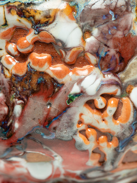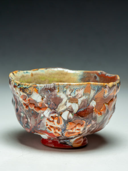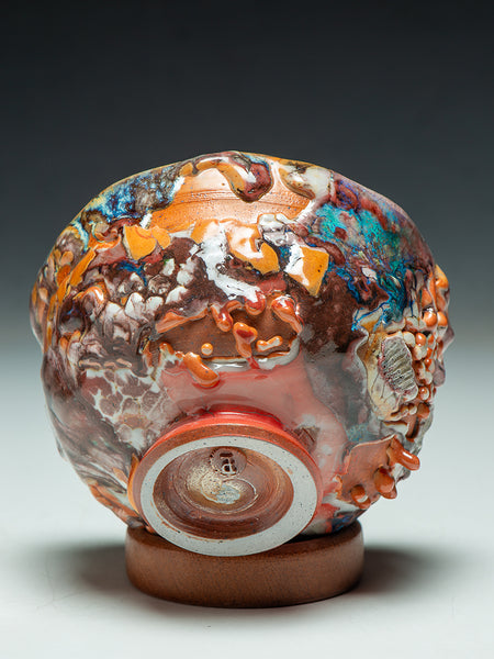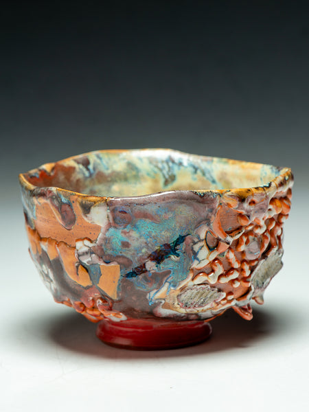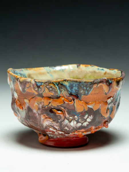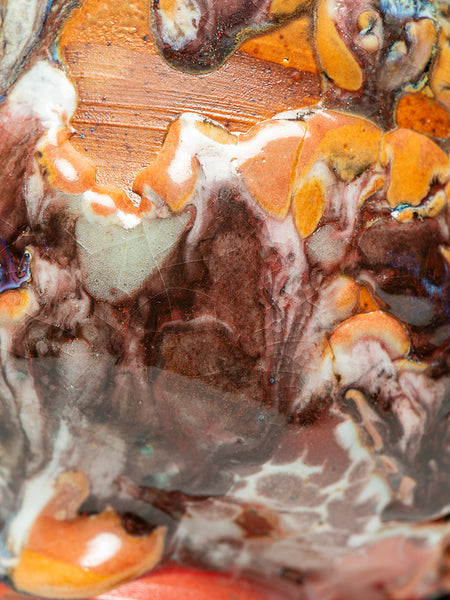 This Tea Bowl (chawan) measures 3.5 inches tall and 5.75 inches in diameter. I invite you to look deeply at the remarkable texture and complexity that Oni-glazing creates. I've continued to explore "Oni-Glazing" for the last three years. The complexity and elusiveness manage to delight and challenge me enough that I keep going.
