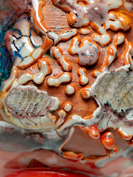 I'm especially interested in "unlearning" some of the things I learned early in my clay career: I'm not trying to cause/create dripping, running and crawling. Notice how these "errors" contribute to the vibrant and robust nature of the work.